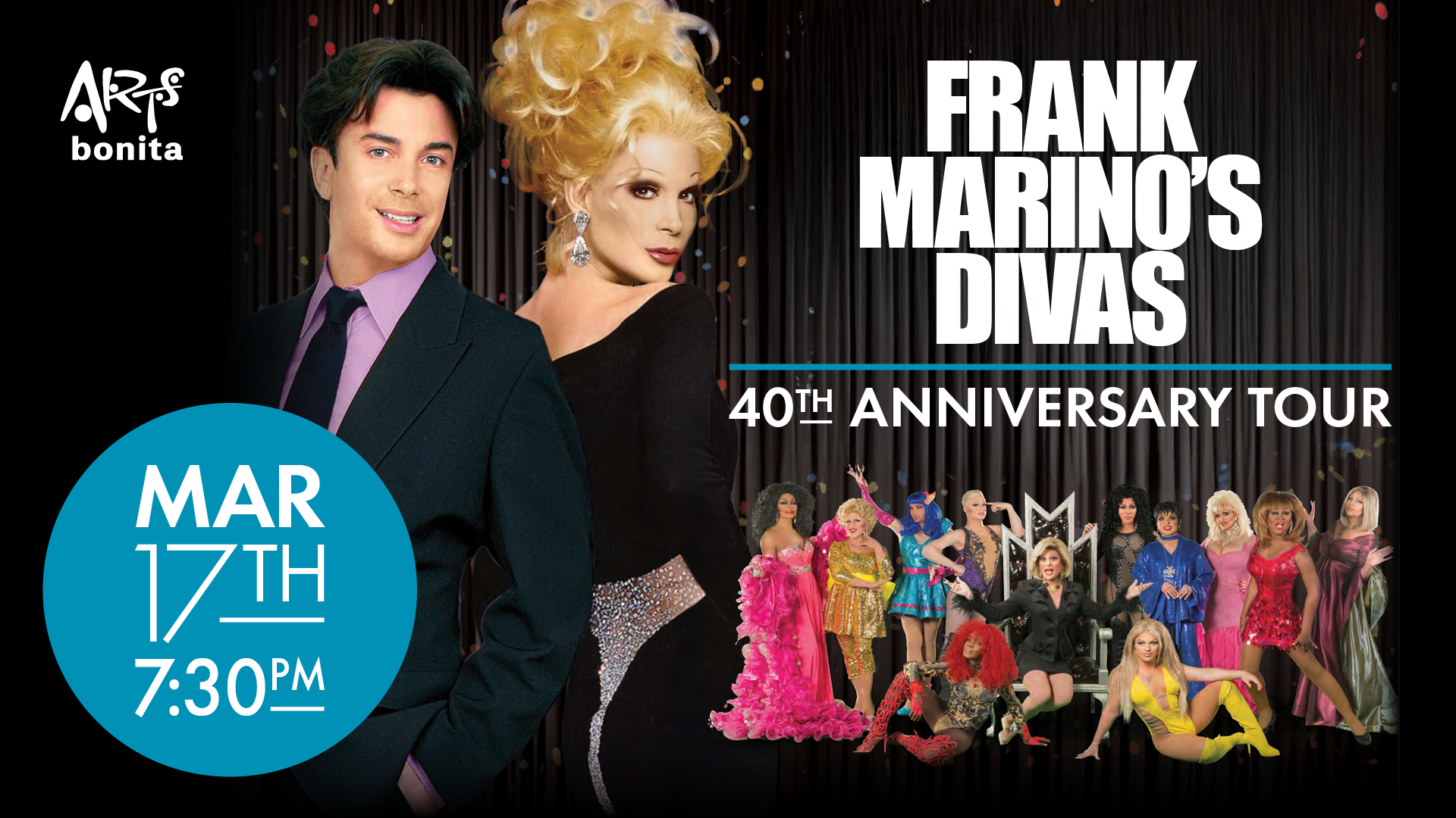 Don’t hate Frank Marino because he looks better in a gown than you do. Or because his hair, makeup, and mile-high Manolos are always flawless. Just grab your seat and get ready for the glitziest, sassiest party on stage — because DIVAS is back and celebrating 40 legendary years!