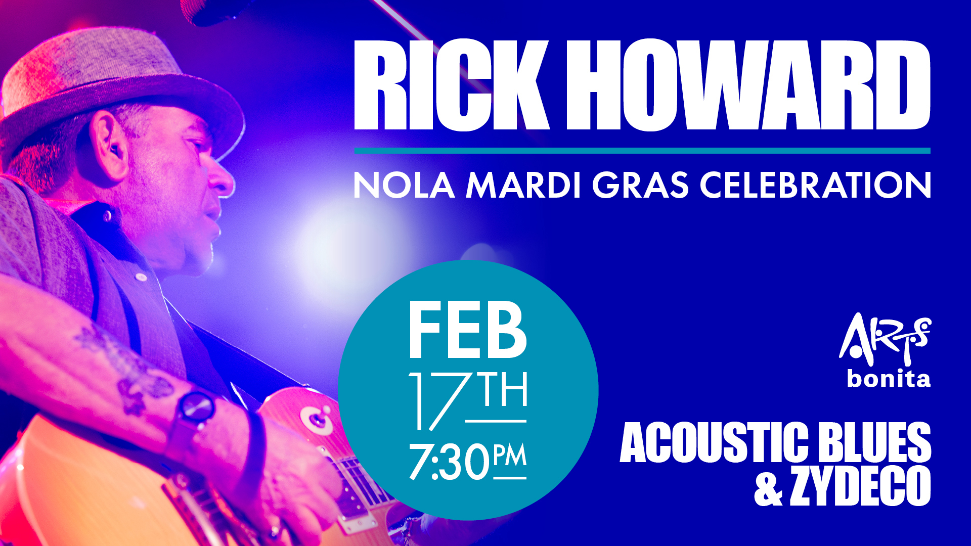 Add to Calendar 2026-02-17 19:30:00 2026-02-17 19:30:00 Rick Howard: Nola Mardi Gras Celebration “At the core of this exceptional ensemble is the unmatched talent of Rick Howard, whose guitar virtuosity has earned him recognition as one of South Florida’s most outstanding musicians.” Florida Weekly NOLA spirit takes over Southwest Florida when Rick Howard and friends light up the stage with a high-energy Mardi Gras celebration! Get ready for a night of infectious Zydeco, soulful Blues, and New Orleans classics like “Iko Iko” and “Jambalaya,” along with hits from legends like Fats Domino, Dr. John, and The Meters. Let the good times roll with live music, Mardi Gras masks, and festive noisemakers — all included! Come ready to dance, sing, and celebrate Big Easy-style! “In an area brimming with guitar talent, Rick Howard stands out as one of South Florida’s best.” Matt Mangas, US 41 Radio Tuesday, February 17, 2026, 7:30 PM Performing Arts Center 10150 Bonita Beach Rd, Bonita Springs, FL 34135 Location Visit Fort Myers vcb@leegov.com America/New_York public