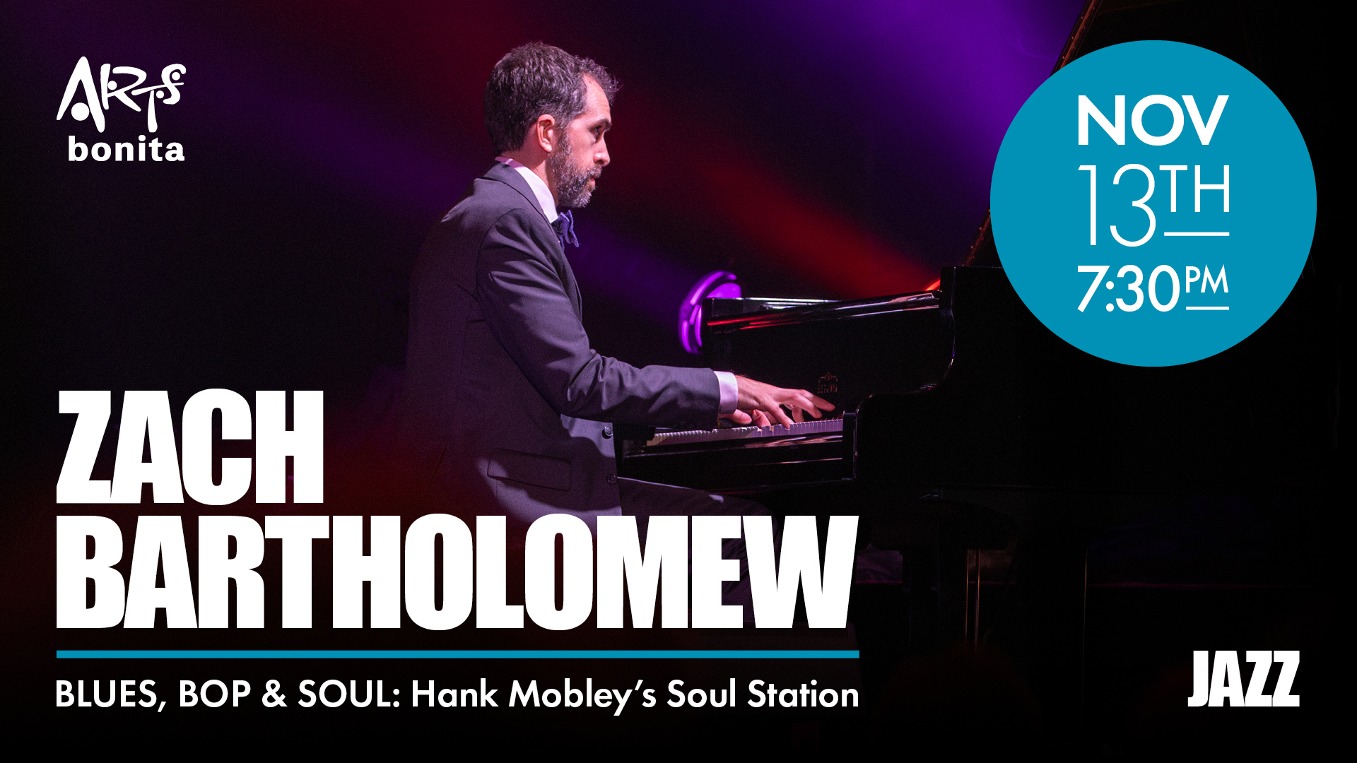 In this high-energy concert, award-winning pianist Zach Bartholomew teams with renowned saxophonist Jeff Ellwood in a tribute to Mobley’s classic 1960 Blue Note release, Soul Station, a landmark album hailed as one of the finest of Mobley’s career. The program also features original compositions by Bartholomew, inspired by the album’s bluesy grooves, funky rhythms, and lyrical sophistication.
