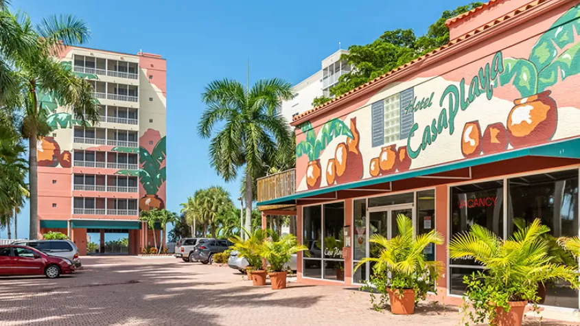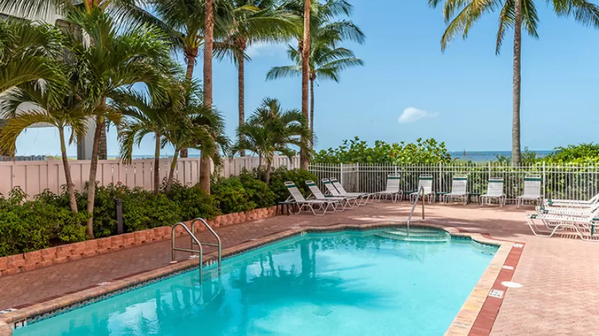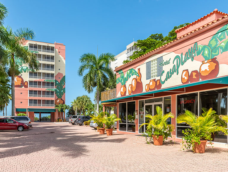 This three-star beachfront resort is located on the exclusive north end of Estero Island on Fort Myers Beach. The resort is pet-friendly (some restrictions apply). Shopping, restaurants and nightlife are an easy 10-minute stroll from the resort.